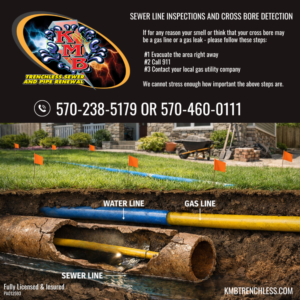 As the ground thaws across the Poconos and Monroe County, spring projects begin, fence installs, deck footings, landscaping, utility work, and new construction. But before digging starts, there’s something critical many property owners overlook: Cross bore inspections. A cross bore happens when a utility line (like gas) is accidentally drilled through an existing sewer line during underground installations. It may go unnoticed for years until someone clears a drain and damages the gas line. If you’re planning outdoor projects or managing properties this season, proactive inspection can prevent serious safety hazards and costly emergencies. Contact KMB Trenchless Sewer & Pipe Renewal to schedule a cross bore inspection before digging begins.