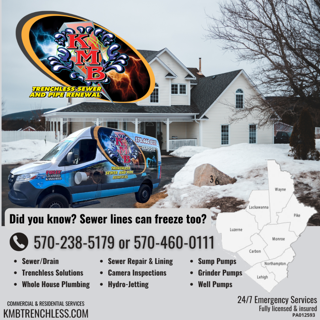 Most homeowners worry about exposed water lines in the winter, but your sewer line is also at risk when temperatures drop. If roots, cracks, or sagging sections are slowing down the flow, wastewater can sit in the pipe just long enough to freeze solid during a cold snap. A frozen sewer line can lead to major damage, messy backups, and expensive emergency repairs. If your drains are slowing down or acting “weird,” don’t shrug it off. Winter can turn a small sewer issue into a big problem fast. KMB Trenchless can inspect, clear, and protect your sewer line before the cold weather takes over. Call us today to schedule an inspection.